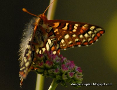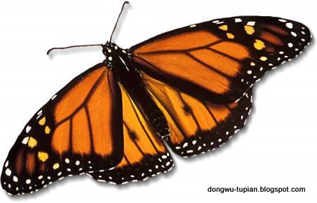 蝶类的特征:1.多数蝶类翅膀正面的鳞粉色泽亮丽,翅表面不被毛绒.少数蛱蝶科的蝶类后翅根部被有较明显的毛绒.